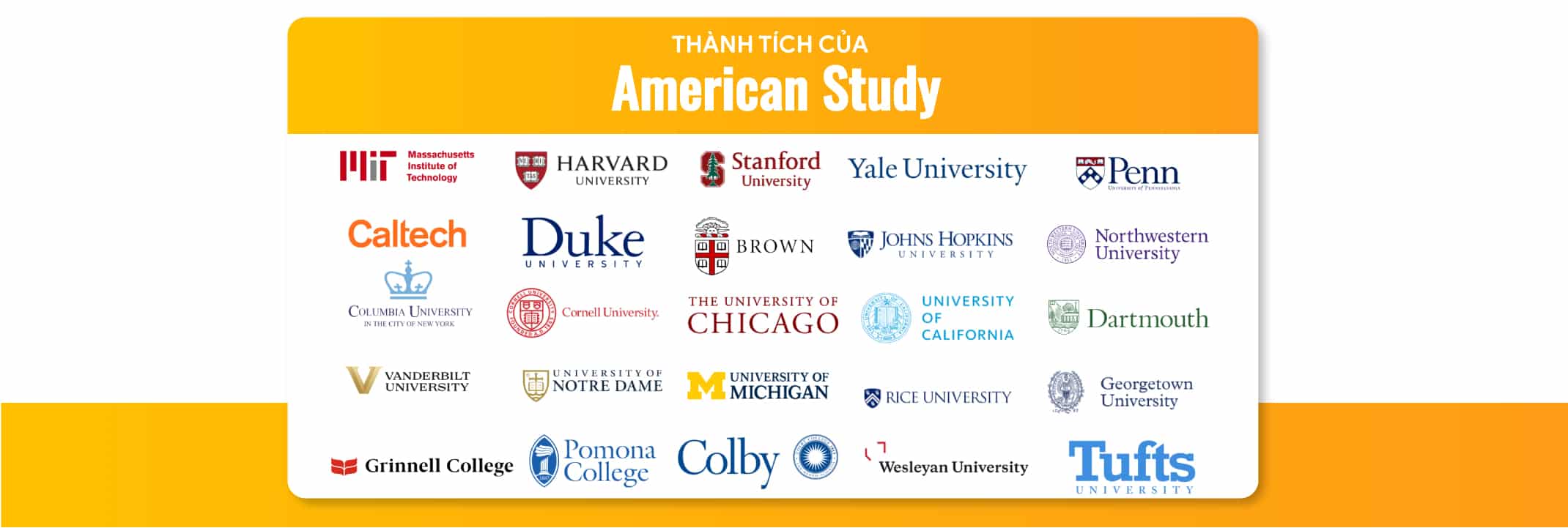 Rất nhiều thế hệ học sinh của American Study đã xuất sắc trúng tuyển và nhận học bổng cao tại các trường đại học top đầu tại Mỹ!