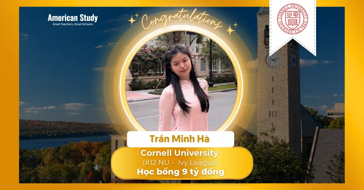 Việc chinh phục một trong 8 trường Đại học Ivy League danh giá luôn là giấc mơ lớn của không ít các học sinh mong muốn du học Mỹ. Vừa qua, Trần Minh Hà – học sinh của American Study – đã biến giấc mơ đó thành hiện thực khi nhận được thư trúng tuyển từ Đại học Cornell cùng mức học bổng ấn tượng lên tới 9 tỷ đồng. Đây không chỉ là kết quả của năng lực học thuật vượt trội mà còn là minh chứng cho một chiến lược xây dựng hồ sơ thông minh, khai phá đúng chất riêng của bản thân.
